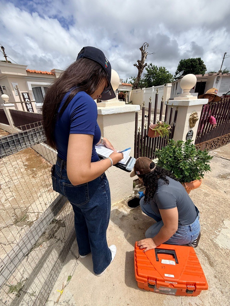 Orientación comunitaria e inspección de patios en colaboración con los centros Sor Isolina y la Universidad de Puerto Rico, en la comunidad Barrancas, Guayama.